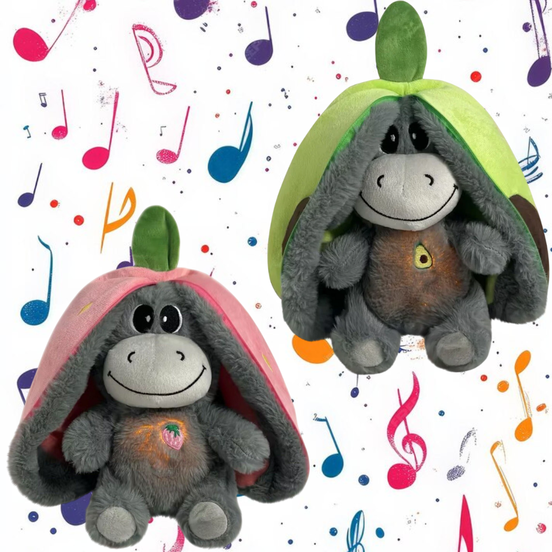 Questi teneri peluche uniscono morbidezza e tranquillità con un tocco di fantasia. Con un semplice gesto, l’asinello diventa un avocado e l’asinella una fragola, creando un’esperienza accogliente e rilassante. Un abbraccio perfetto per momenti di pace!.